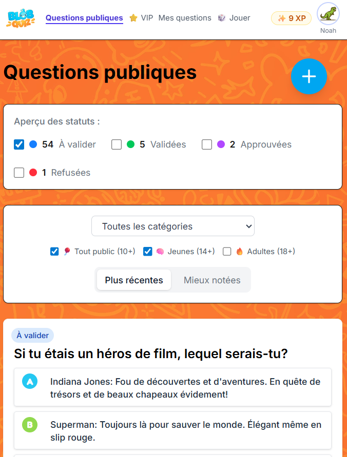 Les questions recevant le plus de retours positifs pourront être sélectionnées et validées par Arkada Studio.