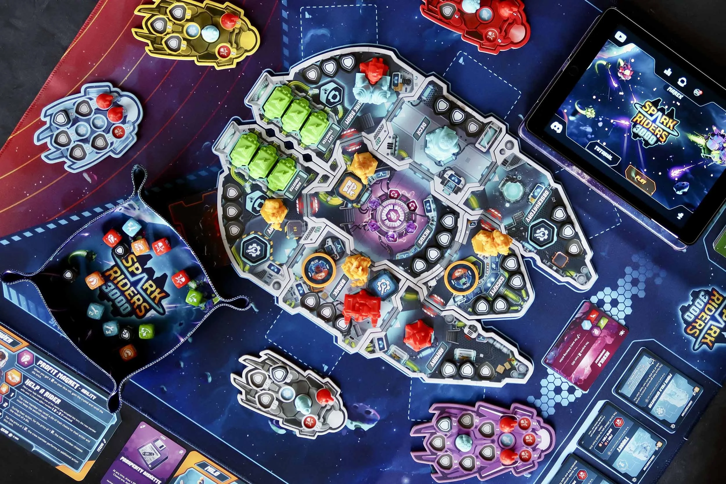 Spark Riders 3000 est un jeu de société hybride qui, grâce à son application dédiée, vous met en lien avec Iris l’intelligence artificielle embarquée de votre vaisseau.
